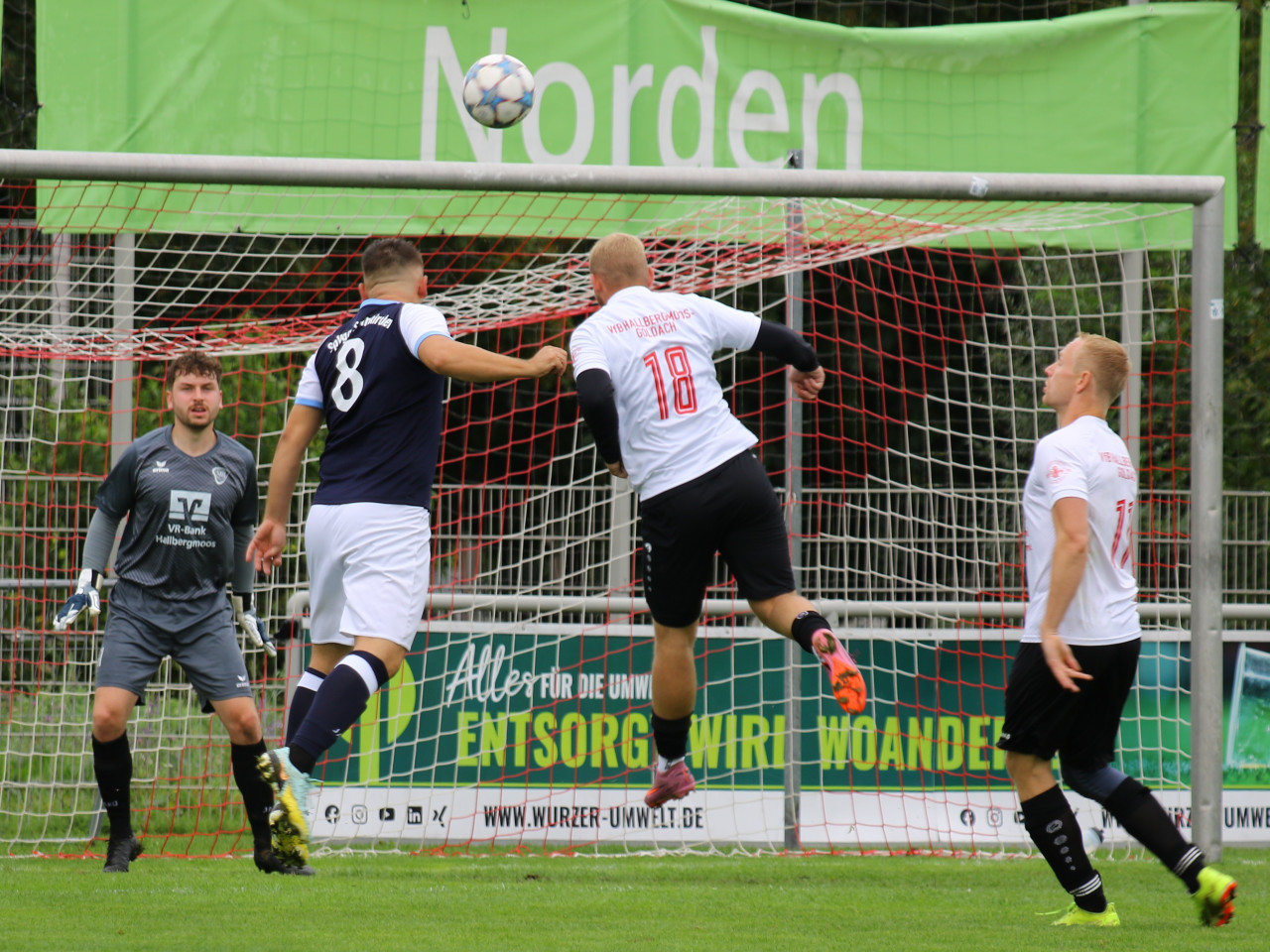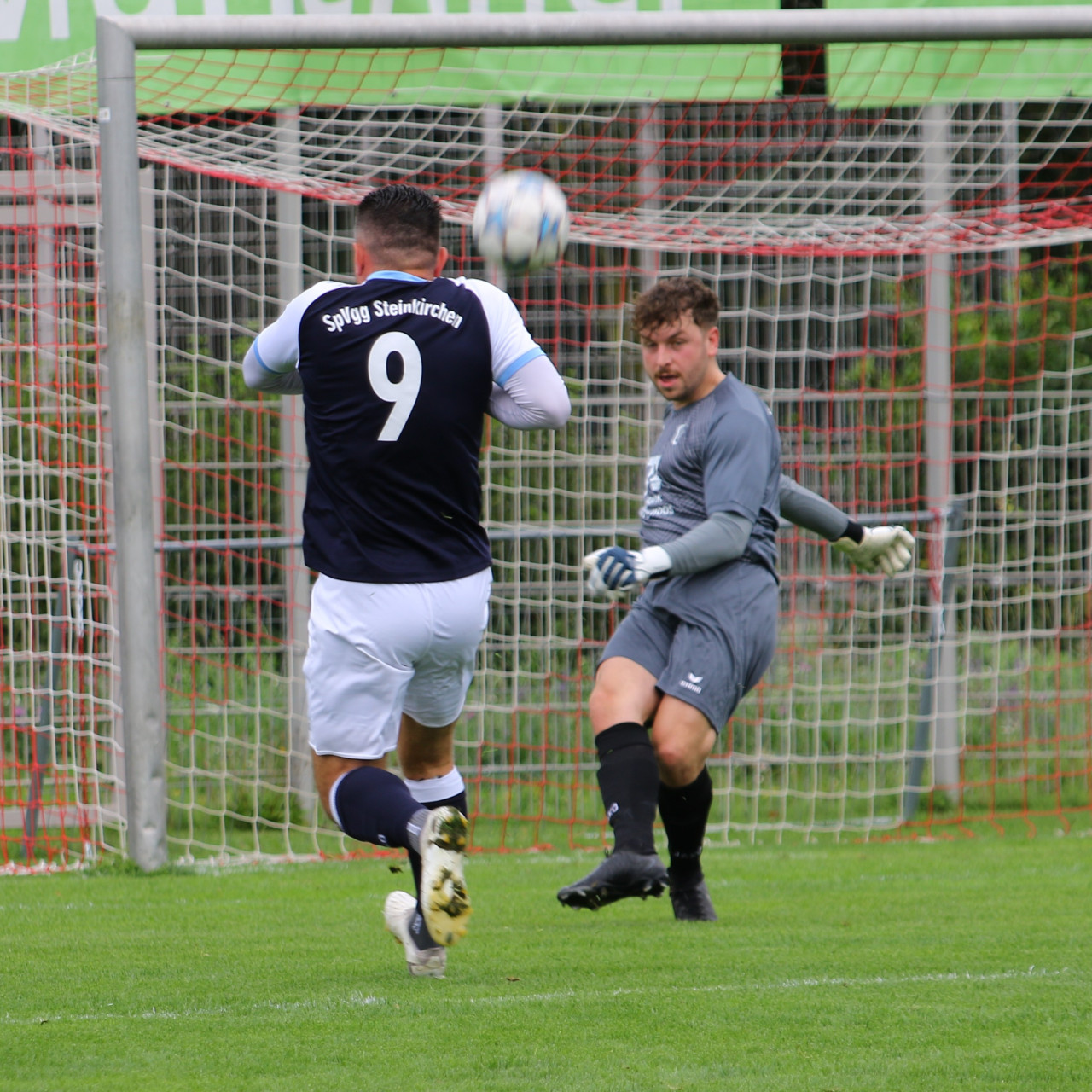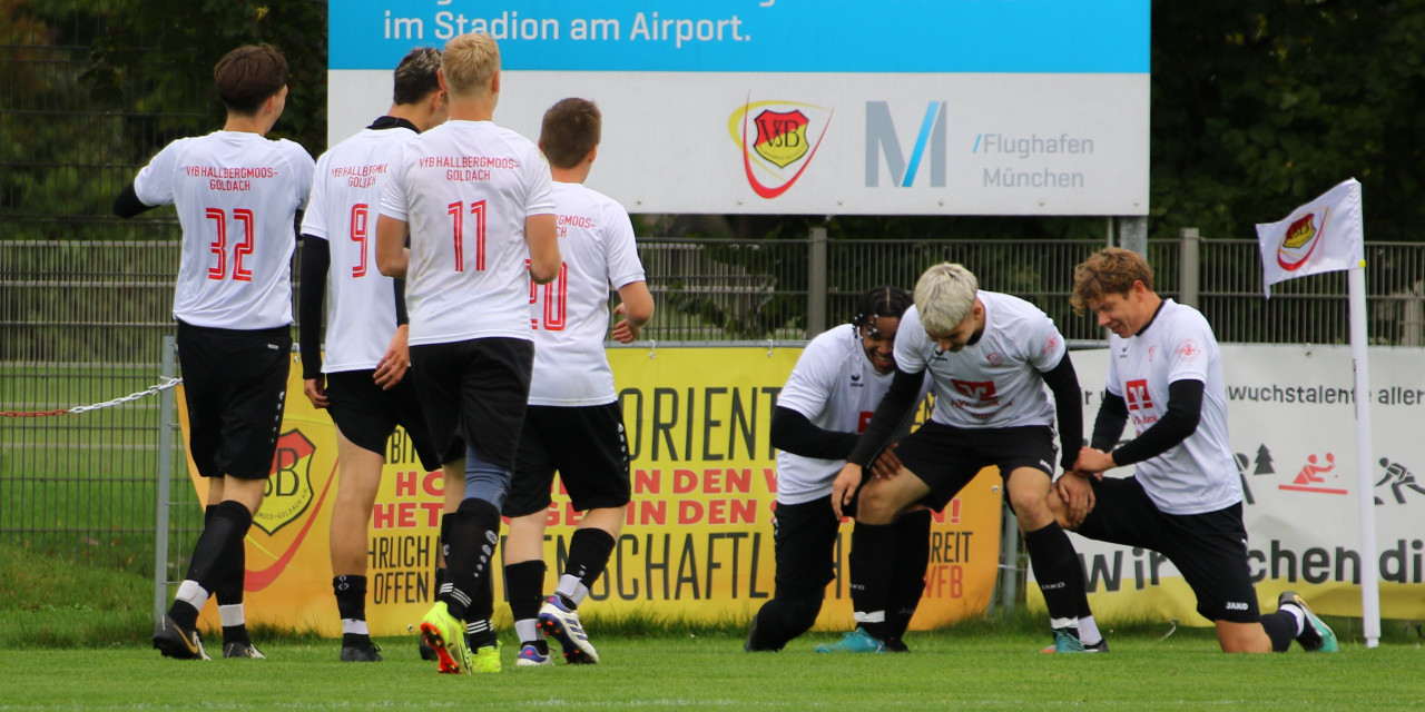 Nach der unglücklichen Niederlage gegen Pulling wollte das Team von Trainergespann Florian Guggenberger, Joshua Balden & Maurice Altermann zeigen, was in ihm steckt und machte von Anfang an "Druck". Noah Tiefenbacher eröffnete den Torreigen in der 6. Spielminute mit dem Treffer zum 1:0. Die sehr offensiv agierenden Hallbergmooser ließen den Gästen aus Steinkirchen nur wenig Raum um die eigene Abwehr zu entlasten und stürmten immer wieder vor das Tor der Steinkirchener. Mit viel Laufbereitschaft und schnellem Passspiel überzeugte die Mannschaft, wobei Jonas Besemer besonders auffiel. Daraus resultierend gelang Leon Würzinger in der 17.min. das 2:0. Diesem Treffer folgte ein Doppelpack vom gut aufgelegten Noah Tiefenbach in der 32. und 34. min. , der damit einen Hattrick einsackte. Bis zur Halbzeitpause gab es noch einige Chancen, doch mit 4:0 ging man erstmal vom Platz.