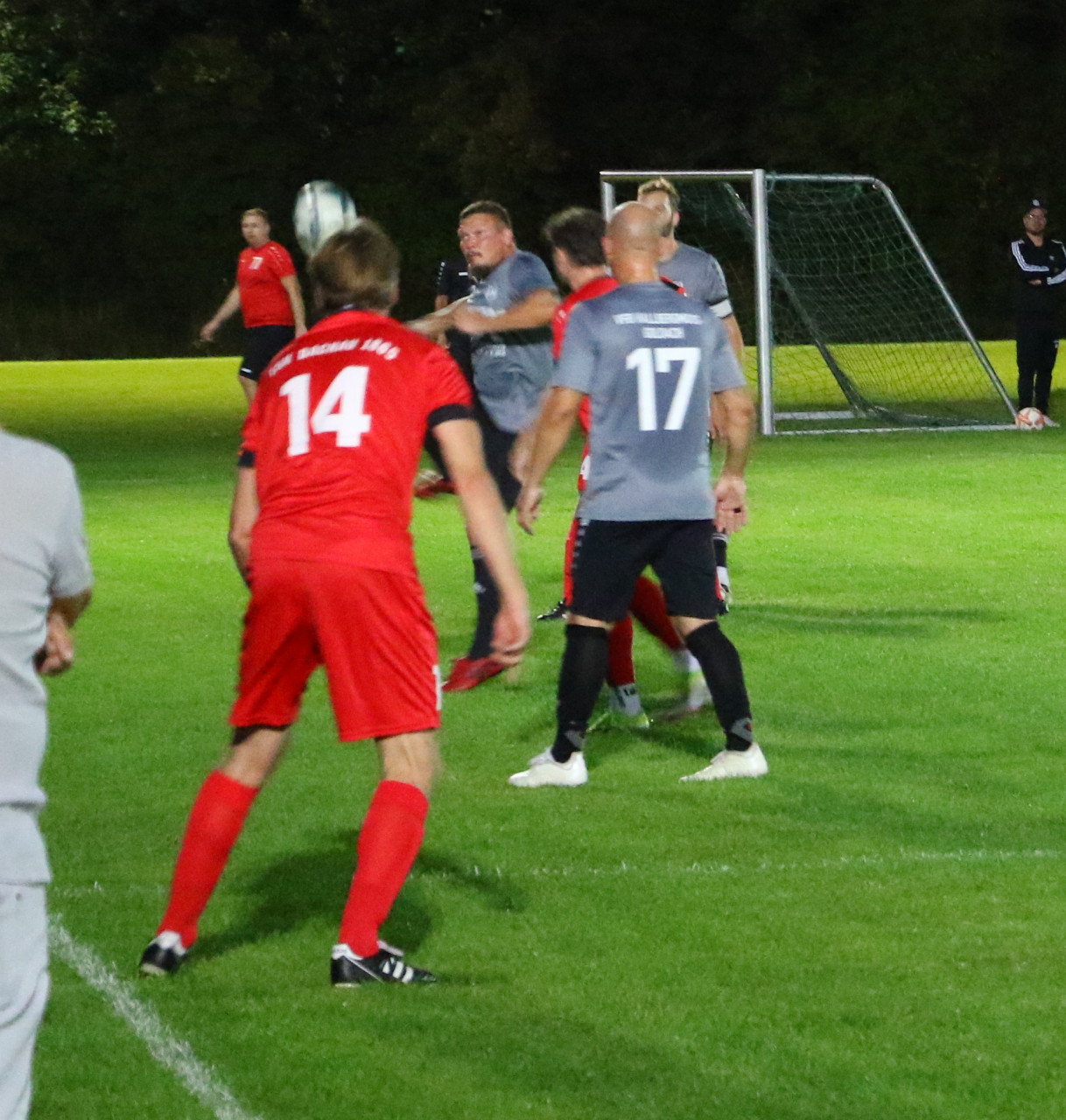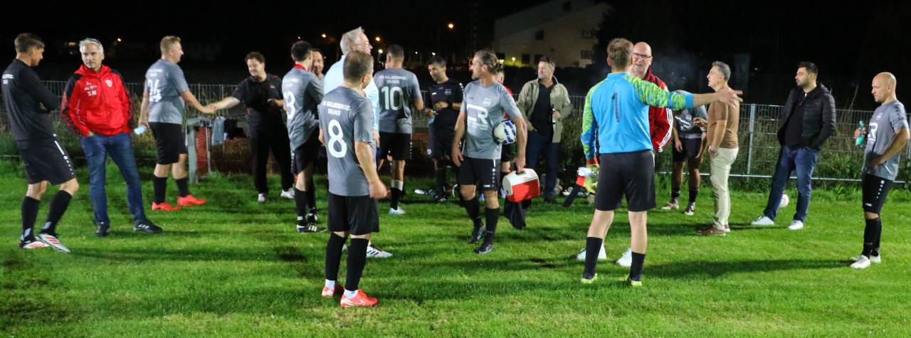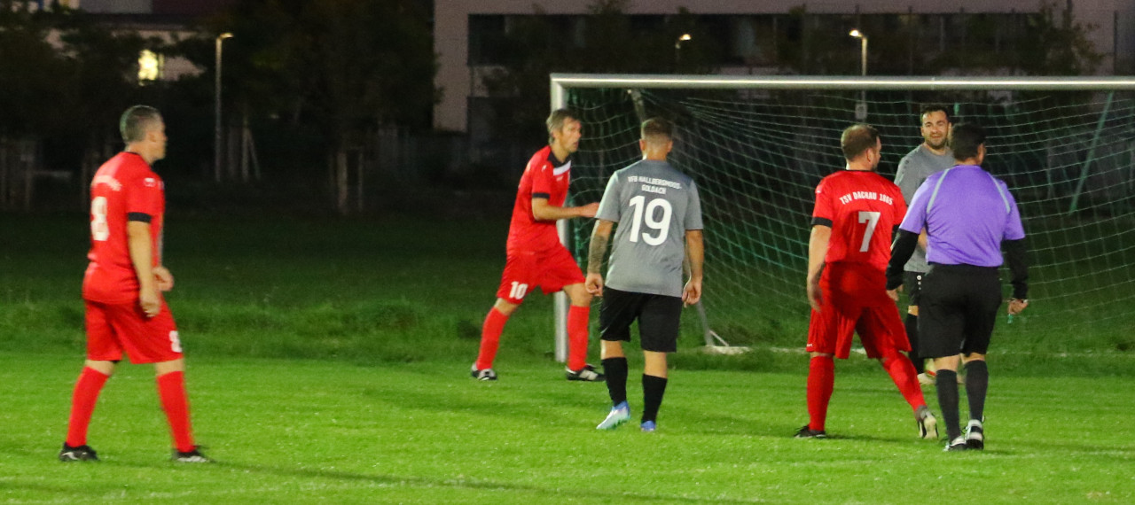 Die AH des VfB trat gestern in Dachau an . Mit dabei auch zahlreiche Fans des Teams von Trainergespann Robert Kühnel Andi Gedau.und Chrischi Binder Doch zunächst mussten sie miterleben , dass Gastgeber Dachau 65 durch einen Doppelpack mit 2:0 in Führung ging. Doch die Attraktiven Herren aus der Flughafengemeinde ließen sich nicht unterkriegen und wehrten sich gegen die drohende Niederlage, schließlich hatte man die Dachauer eigentlich in Griff, die durch 2 schnelle Konter sich gegen das Hallberger Pressing wehrten. Dank eines von Robert Nikolaij verwandelten Elfmeter konnte der VfB mit dem Halbzeitpfiff auf Aufholjagd gehen . Nach der Pause dominierten die VfB'ler weiter und dank des Dachauer Torwartes, der wie auch schon in der 1. Halbzeit einige Chancen vereitelte, lagen die Gastgeber bis zur 67 min. noch in Front. Zu diesem Zeitpunkt konnte der VfB den Ausgleich erzielen. Nach einem Kopfball von Binder und nach vehementen Nachsetzen von 2 VfB-Spielern und dem Keeper landeten der Ball und diese 3 drei Akteure im Netze. Die VfB'ler machten weiter Druck, die Dachauer konnten bis auf einen gefährlichen Freistoß dem kräftemäßig nicht viel entgegen setzen, und so gelang in der Nachspielzeit Dirk Bothfeld der Siegtreffer zum 3:2. Selbst dem Schützen war danach nicht klar ob er mit Brust, Kopf oder Bein den Ball über die Torlinie gedrückt hatte. Damit steht der VfB weiterhin auf Rang 2der Senioren Ü32 Klasse Dachau/Freising. Tabellenführer ist punktgleich, aber mit einem Spiel weniger, die Spielgemeinschaft Schwabhausen/Erdweg/Arnbach gegen die der VfB am 29.9 ein Heimspiel hat und bei der man am 10.10 zu Gast ist.
