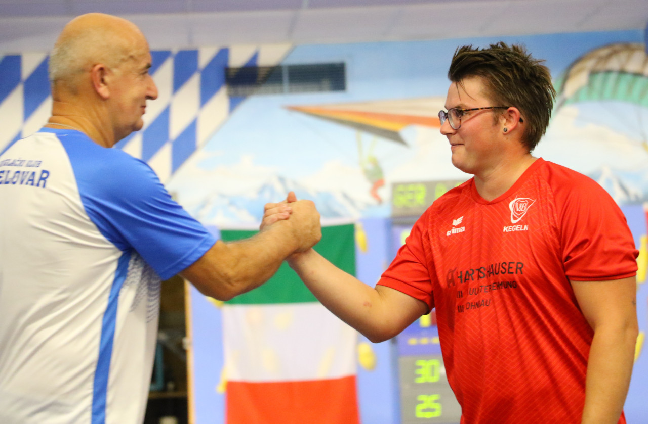 Dank einer tollen Mannschaftsleistung, die VfB erspielten sich mit einer Gesamtpunktzahl von 3903 Holz den 1. Platz von insgesamt 27 am NBC-Cup in München teilnehmenden Teams, ziehen die VfB-Kegler in die Finalspiele am Freitag 17.10. ein. Dort trifft die Hallbergmooser um 15.00 Uhr auf den viertplatzierten, den BSV Voith St. Polten aus Österreich, der sich mit 3777 Holz qualifizierte. Nach dem am Mittwoch mit Maxi Moser mit 682 Tobias Kramer mit 657 und Bojan Vlakevski 636 Holz schon einen sehr guten Grundstein für das Weiterkommen gelegt hatten, holten auch die 3 weiteren Spieler mit Patrick Krieger 654 , Marius Bäurle 639 Holz und Bogdan Tudorie 635 Holz weitere sehr wichtige Kegel. Den zweiten Platz in der Qualifikation belegte der KK Zadar aus Kroatien mit insgesamt 3837 Holz , der im ersten Final Four Spiel am Freitagmorgen um 12.30 Uhr auf das ungarische Team des Invest Kozutasok KTK, welches mit insgesamt 3833 Kegel den dritten Platz belegte, trifft. Die Sieger aus diesen beiden Partien spielen dann am Samstag gegen einander und sind dann schon für die Champions-League qualifiziert, währende die Verlierer um den dritten Platz kämpfen, der ebenfalls zu der Teilnahme in der Champions-League berechtigt.