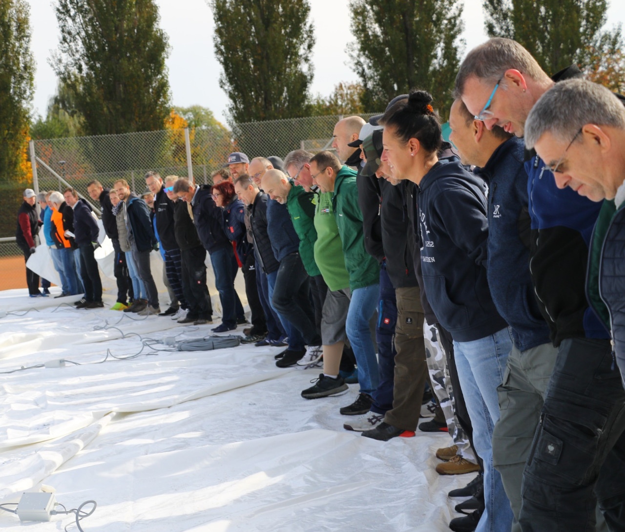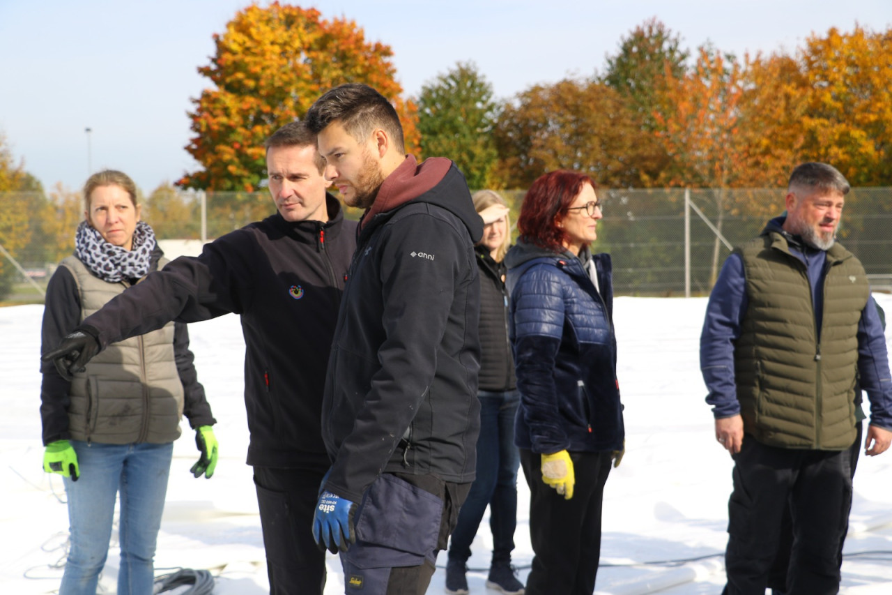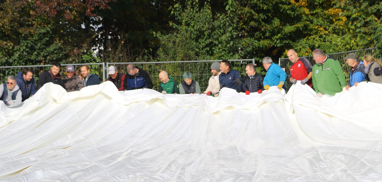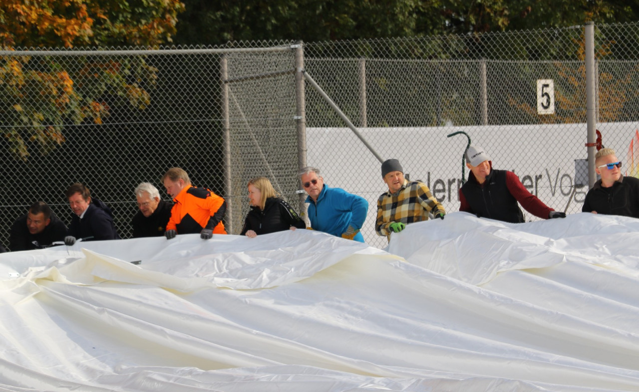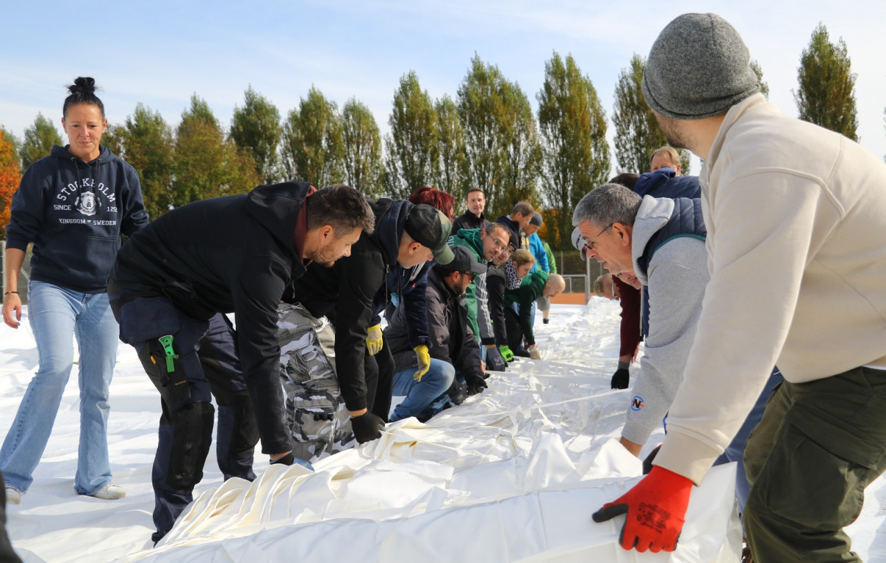 Ein lang gehegter Wunsch der Tennisabteilung geht mit großen Schritten seiner Erfüllung entgegen. Schon 2015 hatte man auf einer Abteilungsversammlung erklärt, dass die Tennisspieler eine Tennishalle benötigen, denn die alte Tennishalle ( Eder) war zu diesem Zeitpunkt renovierungsbedürftig, aber in Ermangelung anderer Winterspielstätten fand man sich bei der Tennisabteilung weiter hin mit der Nutzung dieser ab. In den folgenden Jahren verschlechterte sich der Zustand der Halle weiter, bis man auf eine Anmietung dieser verzichtete. In den letzten Jahren wurden Alternativen geprüft, andere Tennishallen während der Wintersaison genutzt und der Bau einer neuen Tennishalle in Erwägung gezogen. Abteilungsleiterin Jana Daniel und Diana Kreppold investierten viel Zeit in zahlreiche Termine und Präsentationen bei Gemeinde, Verband, Vorstand und Investoren. Sie und zahlreiche andere Helfer konnten nun am Sonntag, 19.10. erleben, wie ihre Vision von einer Tennishalle zum Leben erweckt wurde, als nach kürzester Bauzeit, der Spatenstich fand am 3.Juni 2025 statt, die Hülle der Traglufthalle aufgepumpt wurde.