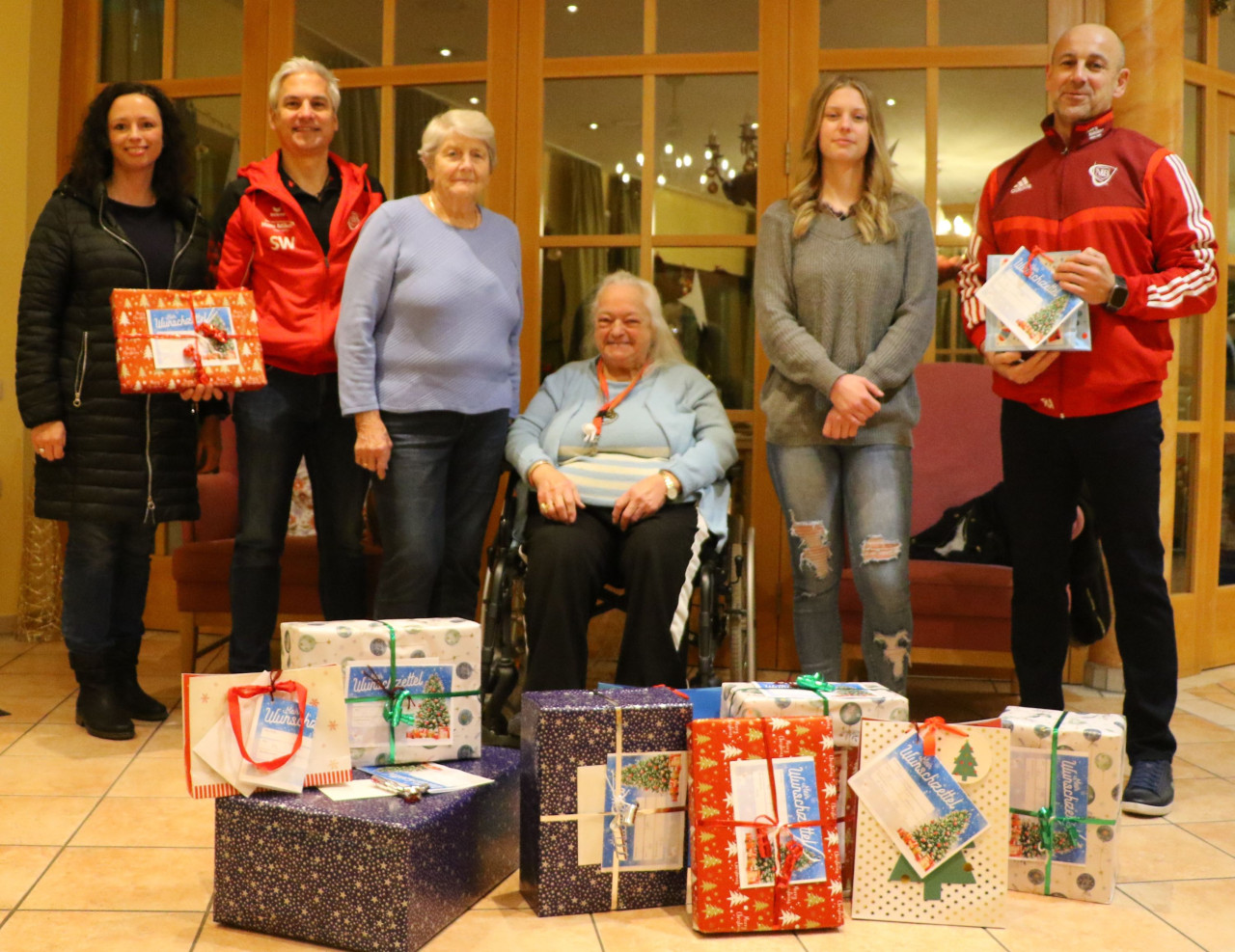 Manchmal reicht ein Blick, um etwas Gutes zu starten. So geschehen bei der AH. des VfB Hallbergmoos. Die Frau von Armin, Bianca Reichler war im Seniorenheim und sah dort den Wunschbaum der Bewohner. Gemeinsam mit ihrem Mann und Hans Hartshauser und dank der Unterstützung von von Jürgen Theil wurde daraus schnell eine Geschenkaktion und am Montagabend überreichten AH-Leiter Sven Waldmann , Armin und seine Frau die liebevoll verpackten Präsente an die Senioren und Seniorinnen des Pichlmayr-Heims in Hallbergmoos.