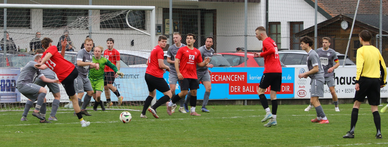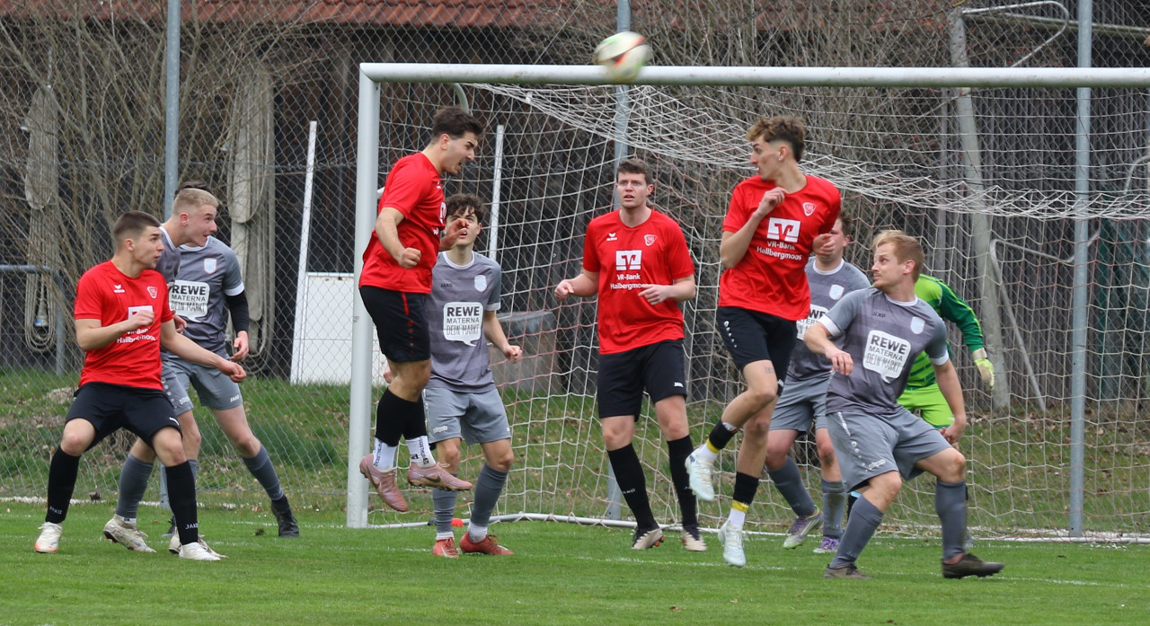 In der 16. Minute brachte Leon Würzinger die Hallbergmooser mit einem Treffer 0:1 in Führung. Nur sechs Minuten später, in der 22. Minute, nutzte Mannschaftskapitän Michael Angermair einen Abstauber von Würzinger und erhöhte auf 0:2. Trotz spielerischer Überlegenheit und mehreren Chancen blieb es bis zum Pausenpfiff bei diesem Spielstand.