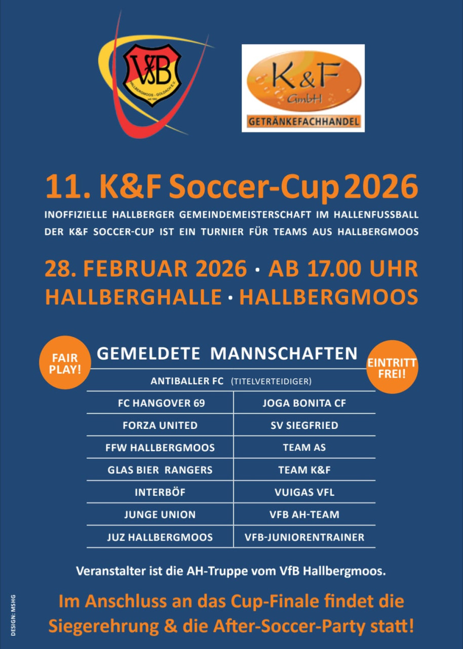 Am  28. Februar ist es wieder soweit: Zum elften Mal wird der K&F-Soccer-Cup  ab 17.00 Uhr ausgespielt.