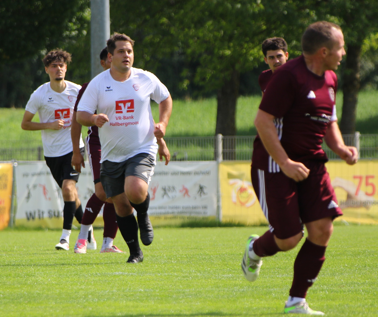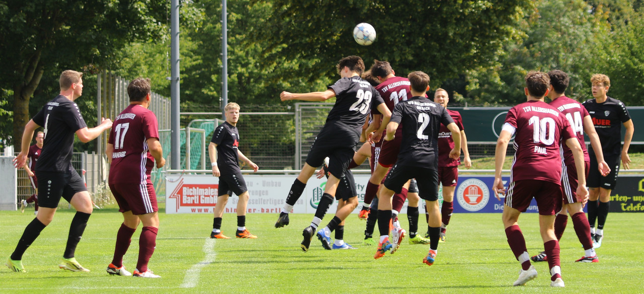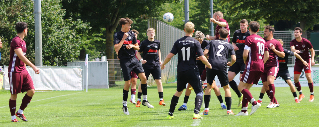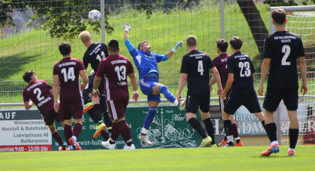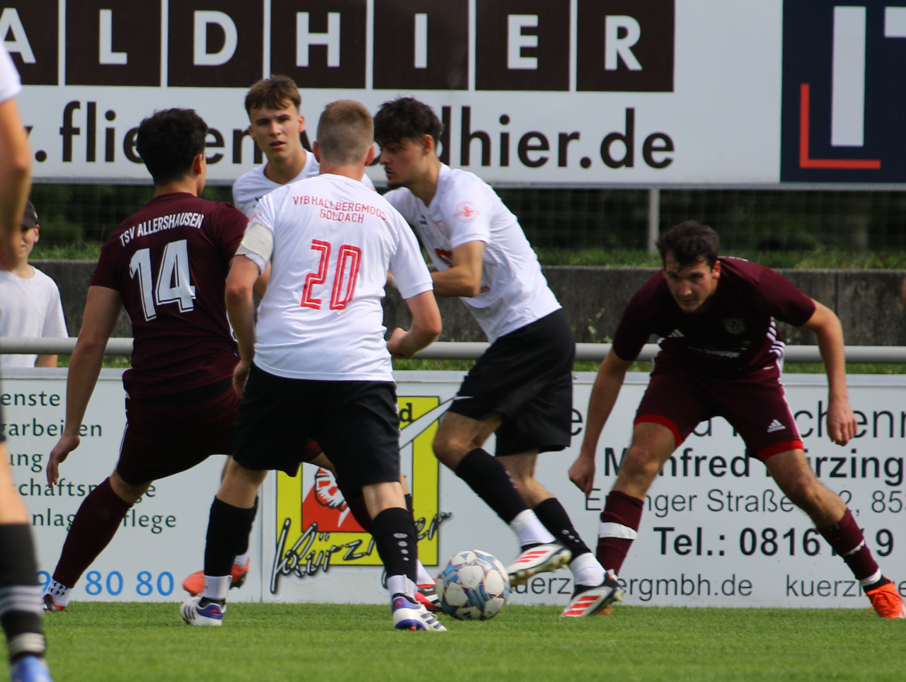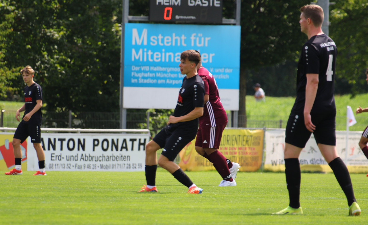 Zwischen 80 und 100 Zuschauer verfolgten am Sonntag, 24.8 das erste Spiel der neu gestalteten und stark verjüngten Reserve des VfB Hallbergmoos.  Das Trainertrio mit Florian Guggenberger, Joshua Balden und  Maurice Altermann hat nominell einen Kader von rund 40 Spielern und oftmals sind mehr als 20 Spieler beim Training. Beim Auftaktspiel gegen Allershausen gab es eine prallgefüllte Ersatzbank. Von Anfang an spielten die jungen VfB'ler ihre Schnelligkeit aus, die Allershausener zeigten ihre Stärke in den Standards. Auch aus einer Ecke resultierte früh das 0: 1 für Allershausen. Doch die Hallbergmooser steckten nicht auf und kamen immer besser ins Spiel und glichen in der 31.min. durch Noah Tiefenbacher zum 1:1 aus der einen Freistoss artistisch ins kurze Eck bugsierte.  Die VfB'ler blieben weiter am Drücker  über die Halbzeit hinaus, hatten mehr Spielanteile, gerieten aber durch individuelle Schnitzer immer wieder in Gefahr. Das  erlösende 2:1, welches erst in der 89. min. durch Michael Kratzerfiel,  wäre auch früher mehr als verdient gewesen, aber auch ein unglückliches 1:2 hätte fallen können.  Trainer , Mannschaft , Fans und Zuschauer , zu denen auch die Trainer der Ersten und die Abteilungsleitung gehörten, zeigten sich glücklich nach dieser Partie, zumal Allershausen als Meisterschaftsaspirant gehandelt wird.