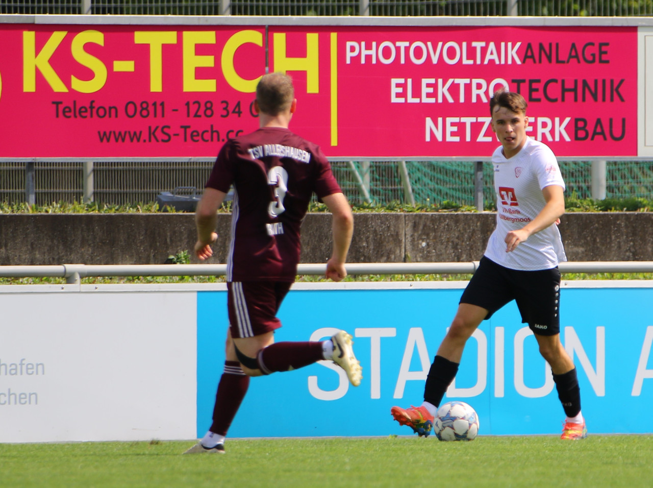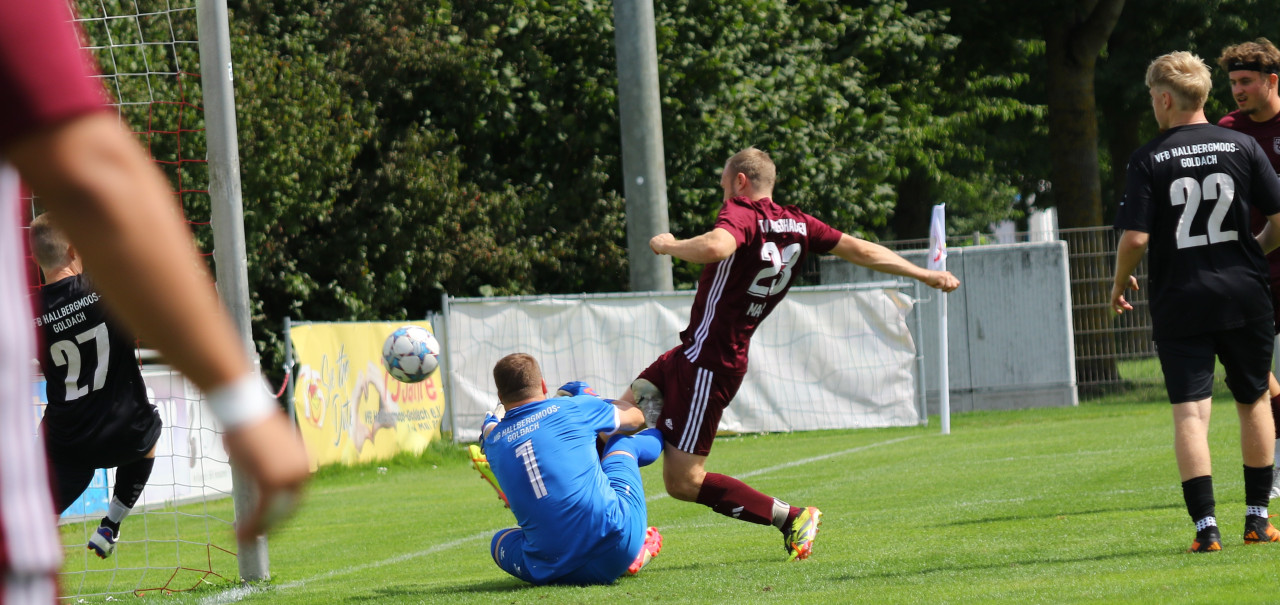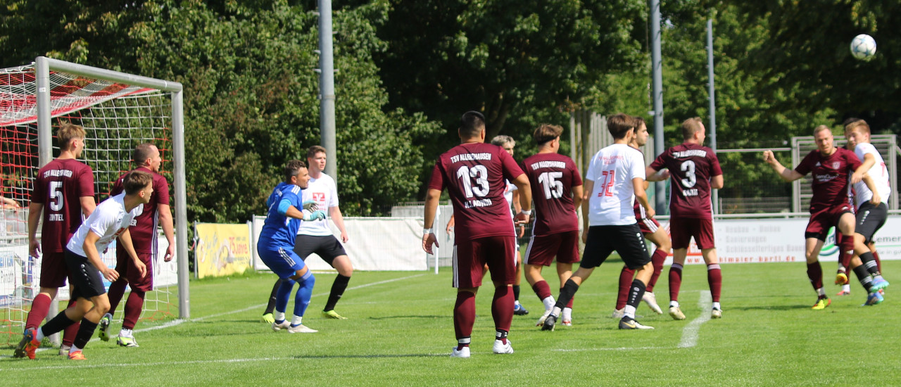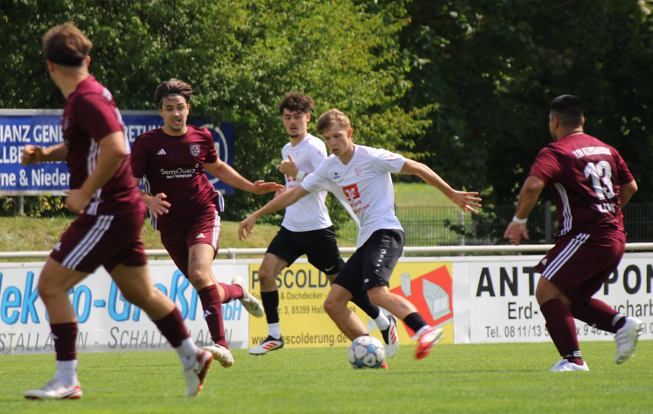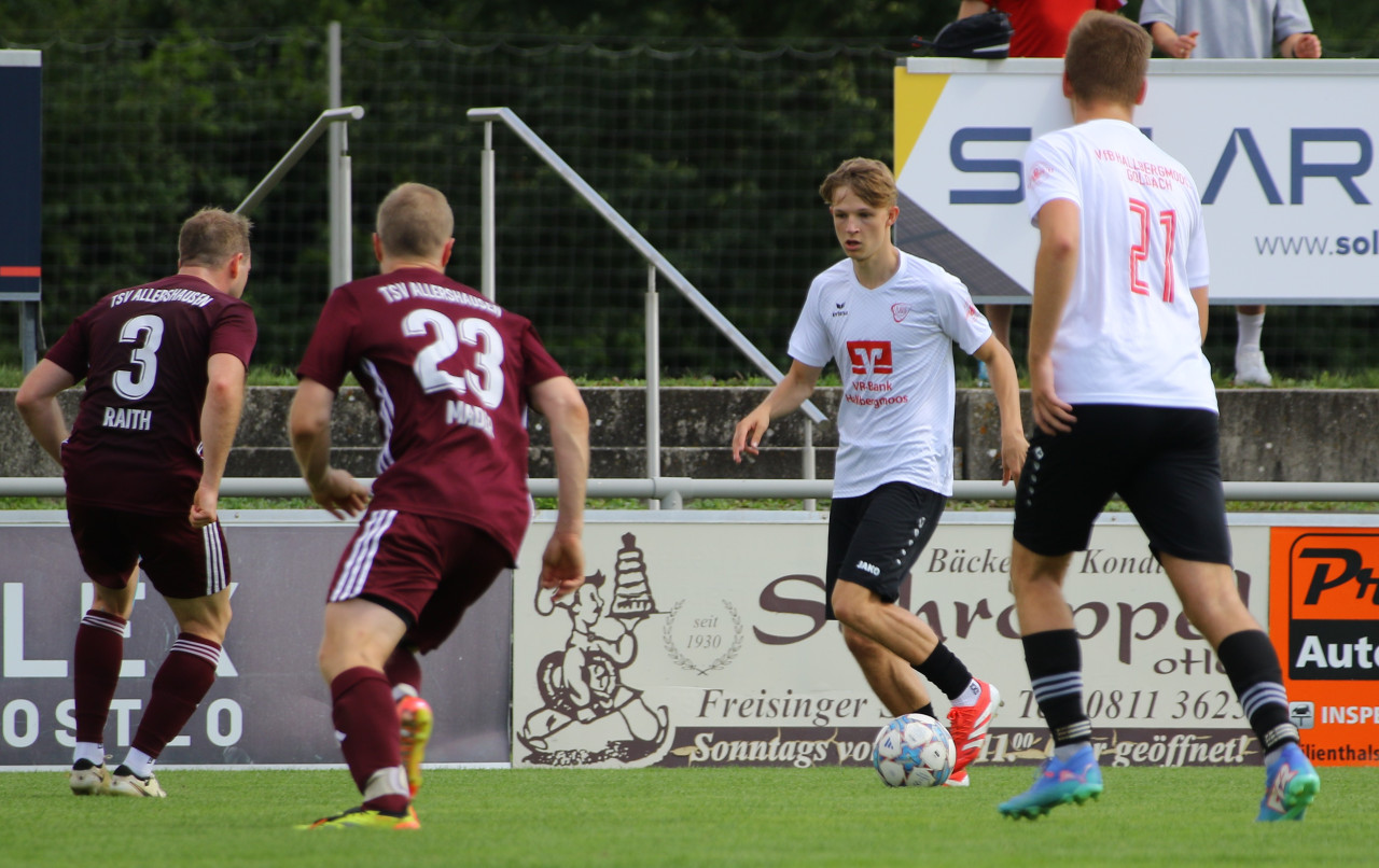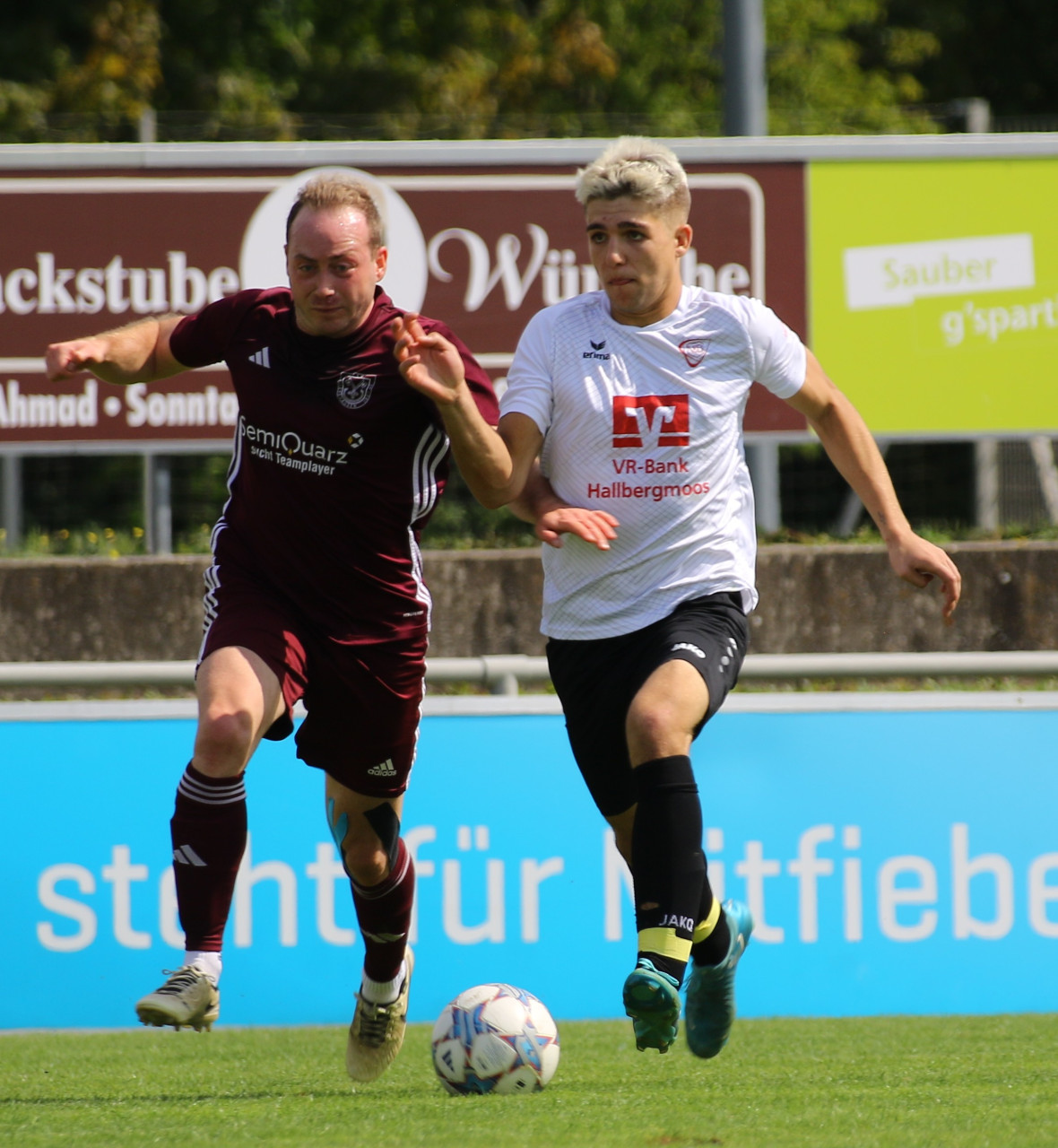 Zwischen 80 und 100 Zuschauer verfolgten am Sonntag, 24.8 das erste Spiel der neu gestalteten und stark verjüngten Reserve des VfB Hallbergmoos.  Das Trainertrio mit Florian Guggenberger, Joshua Balden und  Maurice Altermann hat nominell einen Kader von rund 40 Spielern und oftmals sind mehr als 20 Spieler beim Training. Beim Auftaktspiel gegen Allershausen gab es eine prallgefüllte Ersatzbank. Von Anfang an spielten die jungen VfB'ler ihre Schnelligkeit aus, die Allershausener zeigten ihre Stärke in den Standards. Auch aus einer Ecke resultierte früh das 0: 1 für Allershausen. Doch die Hallbergmooser steckten nicht auf und kamen immer besser ins Spiel und glichen in der 31.min. durch Noah Tiefenbacher zum 1:1 aus der einen Freistoss artistisch ins kurze Eck bugsierte.  Die VfB'ler blieben weiter am Drücker  über die Halbzeit hinaus, hatten mehr Spielanteile, gerieten aber durch individuelle Schnitzer immer wieder in Gefahr. Das  erlösende 2:1, welches erst in der 89. min. durch Michael Kratzerfiel,  wäre auch früher mehr als verdient gewesen, aber auch ein unglückliches 1:2 hätte fallen können.  Trainer , Mannschaft , Fans und Zuschauer , zu denen auch die Trainer der Ersten und die Abteilungsleitung gehörten, zeigten sich glücklich nach dieser Partie, zumal Allershausen als Meisterschaftsaspirant gehandelt wird.