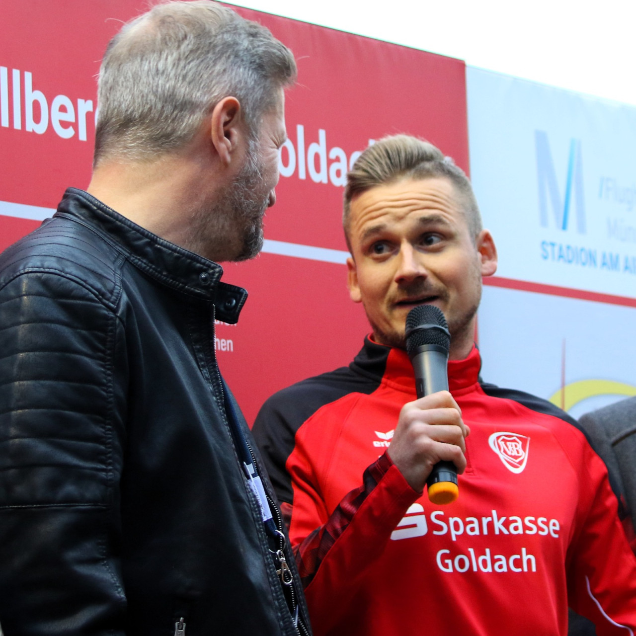 Sascha Habel leitete zur Gesprächsrunde ein in dem er seine Talk Partner sehr passend beschrieb. So Tobias Bracht als den Mann der alles rund um den Fußball weiß  und als "Herzstück" des VfB so die Anzahl der Bälle in den Fußballsäcken nennen kann. Der , der sich mit Verträgen und Zahlen bestens auskennt  ist Martin Gilch und Trainer Gigi , ist der,  der alle laufen lässt und rannimmt.  In der gutgelaunten Gesprächsrunde kamen dann so Fragen auf  wie , wäre Tobias noch für die 1. Mannschaft ein Kandidat. Während Tobi dies verneinte mit der Begründung er wäre zu alt, konnte sich der Trainer schon vorstellen Tobi wenn er denn einen zweiten Frühling erleben würde, ihn als Außenverteidiger mit einem starken linken Fuß in Betracht zu ziehen.  Auch interessierte , wer vom Team der ersten Mannschaft am Sonntag auf der Wiesn' am längste durchhalte und die Antwort von Gigi lautete es seine wohl die beiden Trainer, wobei einiger Spieler auch das Potenzial hätten. Auf die letzten Spiele und die Tabellensituation angesprochen erklärte der sympathische Trainer: " Schon vor der Saison hatte ich darum gebeten geduldig zu sein und die Mannschaft entwickelt, wir glauben an uns und arbeiten hart.  Und wir müssen 100% geben denn dann sind wir wirklich gut. "  Während Giglberger wenig später zu seinem Team eilte, erklärte Martl (wie Martin Gilch von allen genannt wird) "Geld schießt keine Tore", man wolle in die Jugend vor Ort, sowie in Fortbildungen  investieren, zudem dankte er Herrmann, Stefan Schmiedel und Tobias für ihr Engagement  Auch wies der Fördervereinsvorsitzende daraufhin, dass es ja Probleme in der Wirtschaft gäbe und man daher auch mal den Rotstift in die Hand nehmen müsse.