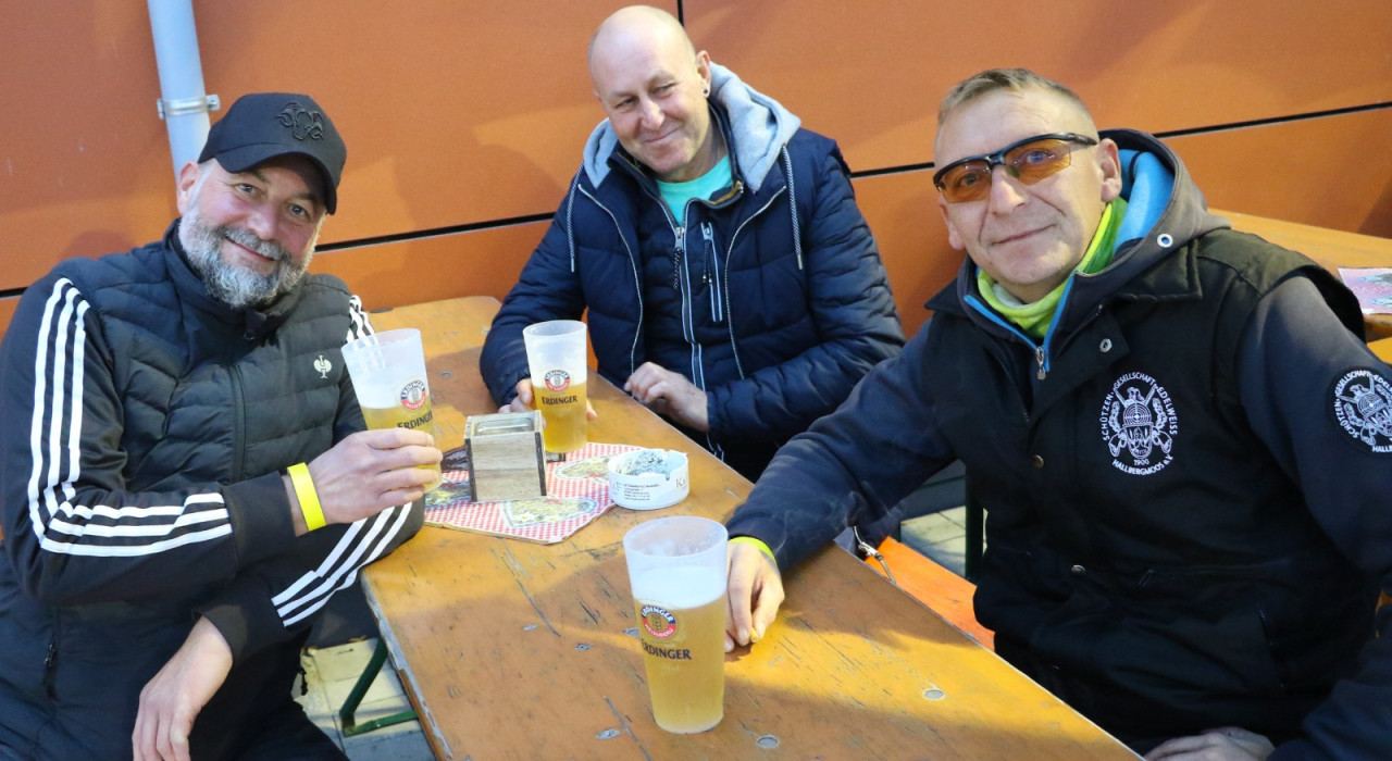 Kurz vor Spielbeginn sollte noch das Ergebnis des Spiels getippt werden. Hier lag keiner richtig , denn alle vier , Fabian(2:1), Martl (4:3), Tobi(1:0) und Sascha (3:1)  setzten auf einen VfB Sieg, statt auf das Unentschieden mit 1:1.