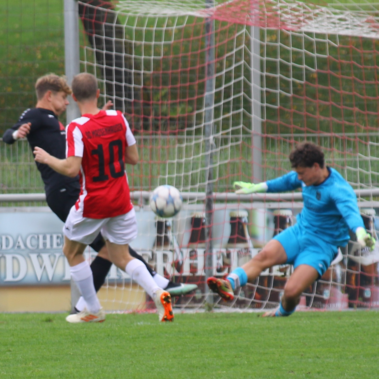Die Gäste starteten recht aufgeweckt und aktiv in die Paarung. Nach wenigen Minuten aber meldeten sich auch die VfB- Spieler. Als Noah Tiefenbacher einen schönen Ball zugespielt bekam zögerte er nicht lange , sprintete los und ließ den Verteidiger aussteigen, ebenso wie den Torwart und erzielte das 1:0. Den Rest der 1Halbzeit sahen die rund 100 Zuschauer ein munteres Spiel , bei dem die VfB'ler Druck machten und die besseren Chancen auf dem Fuß hatten, doch leider landete das Runde nicht im Eckigen. Nach der Pause kamen die Gäste mit mehr Elan aufs Feld und eroberten sich immer mehr Spielanteile. Dann in der 69. Minute fiel der Ausgleich. Und die Massenhausener legten noch eine Schüppe drauf. Torwart Dominik Romanowski und die Abwehr wurde immer mehr gefordert. Die Verteidigung schmiss sich rein, doch gab es kaum Entlastungskonter, der Spielaufbau bei den VfB´lern war fast verschwunden, welch ein Unterschied zur ersten Halbzeit. In der 81. Minute gelang den Gästen schließlich der Siegtreffer zum 2:1.