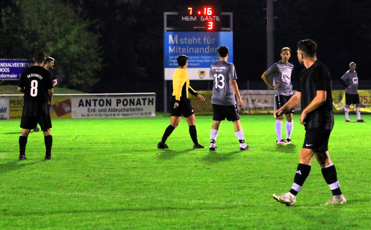 Die Gäste waren schnell unterwegs und nutzten ihren Chancen und gingen  in der 23 min. in Führung. Bis  zur 68min. konnte dieses Ergebnis gehalten werden , doch dann  machte ein Doppelpack der Gegner in der 68.min. und 72. min. alle Hoffnungen auf einen Ausgleich zu Nichte. Die Halbergmooser bemühten sich angefeuert von rund  50-60 Zuschauern um zumindestens einen Treffer , doch hatten sie auch noch Pech bei ihren Abschlüssen . Zudem gab es noch 2  Zeitstrafen für den VfB und einmal gelb-rot, so dass man  auch noch in Unterzahl auf dem Platz stand. Mit dem 0:4 in der Nachspielzeit sicherte sich die Spielgemeinschaft eine hervorragende  Ausgangsposition für das alles entscheidende letzte Match am 10.10. in Schwabhausen. Robert Kühnel: " Um noch  Meister in der Kreisliga zu werden, müssen wir dann mit mehr als  5 Treffern gewinnen. Eine schwere Aufgaben, aber unser Team wird alles tun, um das Ruder noch mal umzureißen."