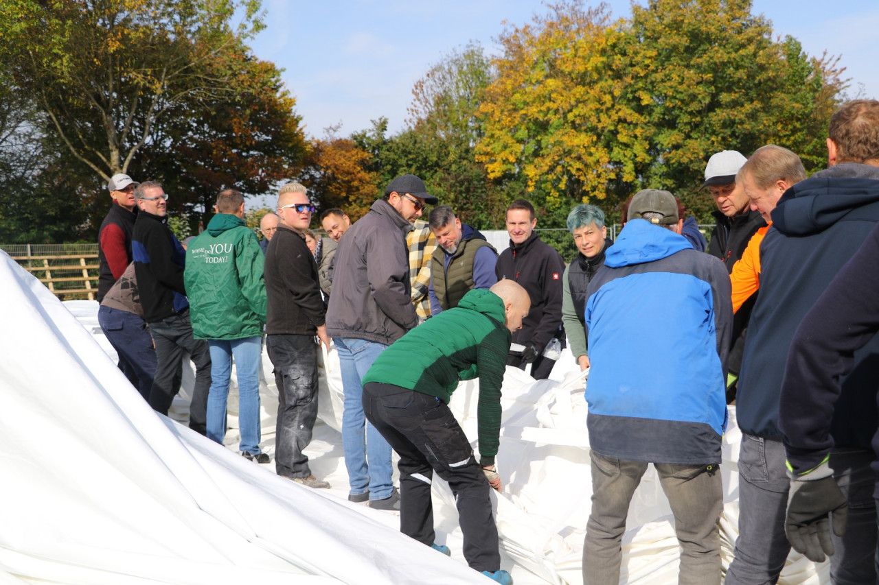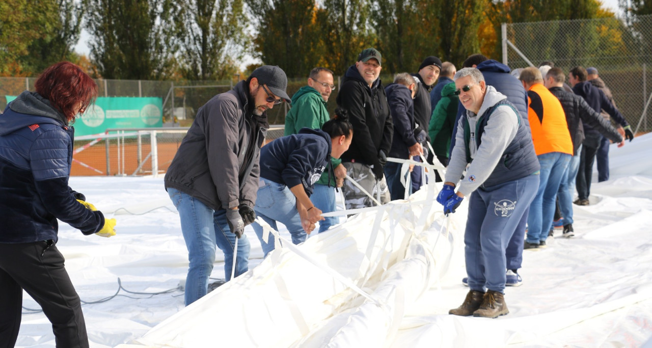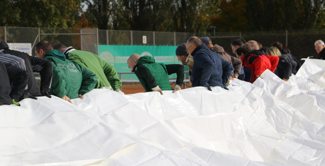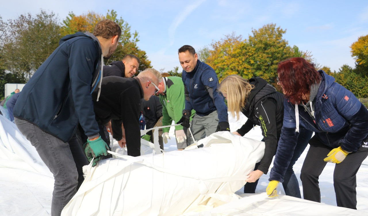 Ein lang gehegter Wunsch der Tennisabteilung geht mit großen Schritten seiner Erfüllung entgegen. Schon 2015 hatte man auf einer Abteilungsversammlung erklärt, dass die Tennisspieler eine Tennishalle benötigen, denn die alte Tennishalle ( Eder) war zu diesem Zeitpunkt renovierungsbedürftig, aber in Ermangelung anderer Winterspielstätten fand man sich bei der Tennisabteilung weiter hin mit der Nutzung dieser ab. In den folgenden Jahren verschlechterte sich der Zustand der Halle weiter, bis man auf eine Anmietung dieser verzichtete. In den letzten Jahren wurden Alternativen geprüft, andere Tennishallen während der Wintersaison genutzt und der Bau einer neuen Tennishalle in Erwägung gezogen. Abteilungsleiterin Jana Daniel und Diana Kreppold investierten viel Zeit in zahlreiche Termine und Präsentationen bei Gemeinde, Verband, Vorstand und Investoren. Sie und zahlreiche andere Helfer konnten nun am Sonntag, 19.10. erleben, wie ihre Vision von einer Tennishalle zum Leben erweckt wurde, als nach kürzester Bauzeit, der Spatenstich fand am 3.Juni 2025 statt, die Hülle der Traglufthalle aufgepumpt wurde.