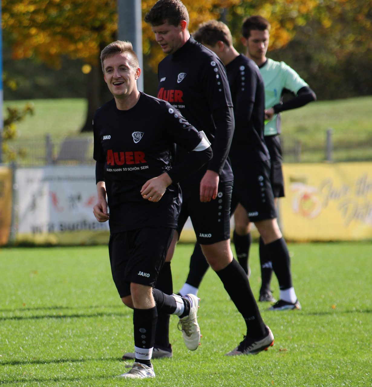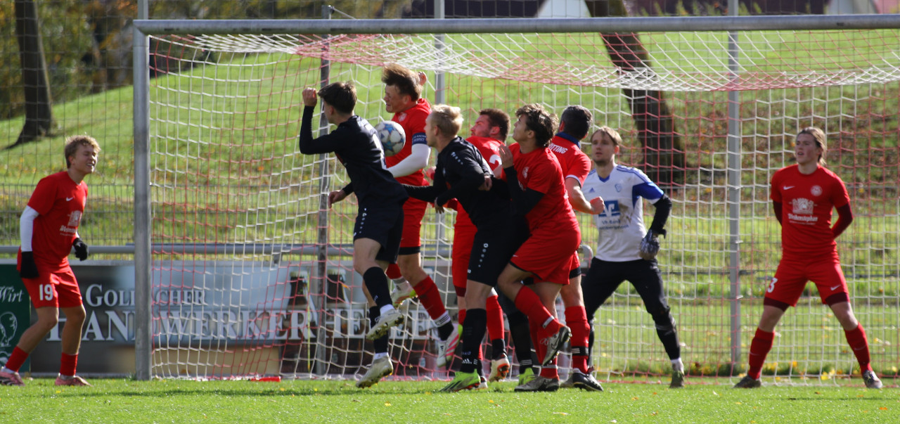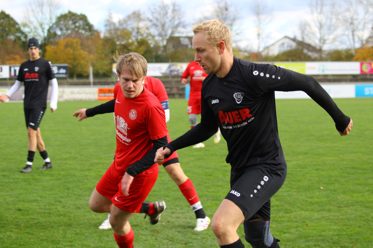 Vor etwa 100 Zuschauern begann die Partie bei windigem, aber schönem Herbstwetter. Die Gastgeber konnten sich zunächst leichte Vorteile erarbeiten und gewannen im Verlauf der ersten Halbzeit immer mehr Spielanteile. In der 27. Minute fiel das erste Tor des Spiels: Mannschaftskapitän Michael Angermair mit der Rückennummer 27 reagierte am schnellsten, nachdem Co-Trainer Joshua Balden aus über 20 Metern Entfernung einen sehenswerten Fernschuss an die Latte gesetzt hatte. Der Ball prallte in den Fünfmeterraum ab, wo Angermair einlief und den Ball per Kopf über die Linie drückte. Mit dieser 1:0 Führung ging es in die Halbzeitpause.
