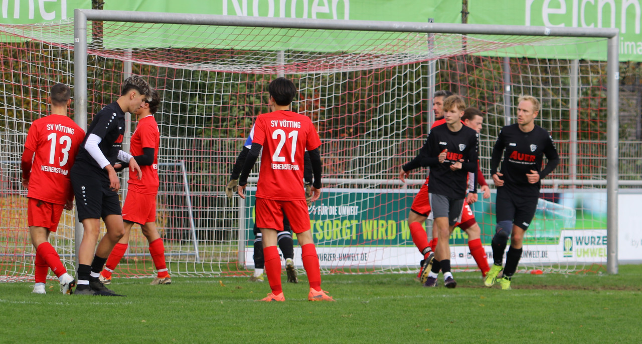 Die zweite Hälfte begann mit zwei individuellen Fehlern auf Seiten des VfB Hallbergmoos. Dadurch gelang es den Vöttingern in der 51. Minute auszugleichen und nur sieben Minuten später in der 58. Minute mit 1:2 in Führung zu gehen. Die VfB-Spieler ließen jedoch die Köpfe nicht hängen, sondern stemmten sich gegen die drohende Niederlage. In der 65. Minute erzielte Buudnoma Nebie „Bertl" nach einem sehenswerten Doppelpass mit Noah Tiefenbacher den Ausgleich zum 2:2.