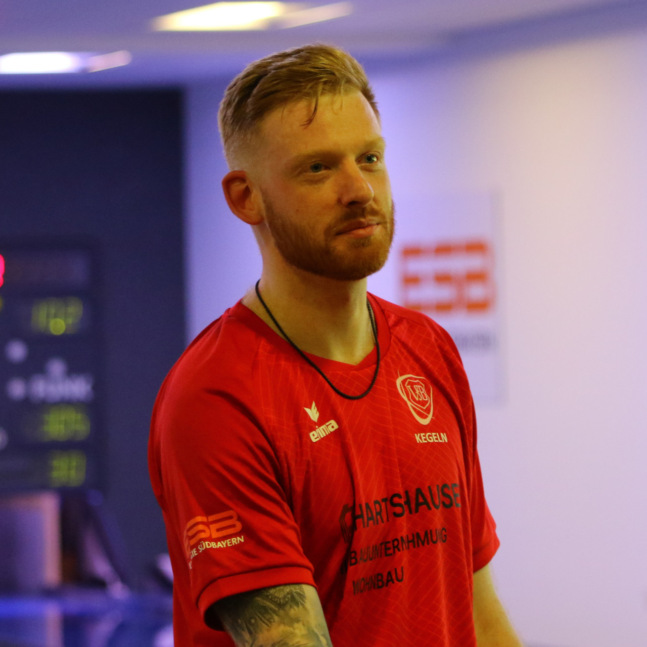 Auf den in orange gehaltenen 6er-Bahn, auf der jedoch nur vier Bahnen bespielt wurden, starteten Maximilian Moser und Bojan Vlakevski für den VfB. Moser hatte Schwierigkeiten, sich mit den Bahnbedingungen anzufreunden und konnte lediglich den letzten Satz für sich entscheiden. Er unterlag l gegen den Tagesbesten des TSV, Michael Ziegert, mit 1:3 Sätzen und 578 zu 639 Holz. Vlakevski hingegen zeigte eine starke Leistung, gab nur den ersten Satz ab und erzielte mit 641 zu 599 Holz das beste Ergebnis auf Hallbergmooser Seite.