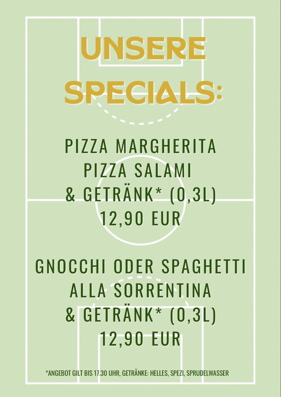 Oro Di Napoli hat für den Spieltag ein Spezialangebot bestehend aus Essen plus Getränk. Das gibt es vor und nach dem Spiel 🙂👍🏽.