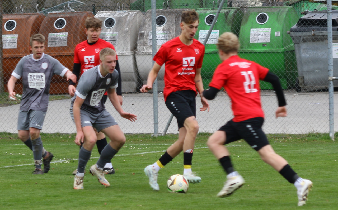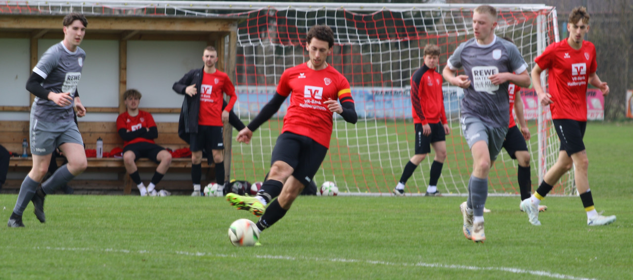 In der 16. Minute brachte Leon Würzinger die Hallbergmooser mit einem Treffer 0:1 in Führung. Nur sechs Minuten später, in der 22. Minute, nutzte Mannschaftskapitän Michael Angermair einen Abstauber von Würzinger und erhöhte auf 0:2. Trotz spielerischer Überlegenheit und mehreren Chancen blieb es bis zum Pausenpfiff bei diesem Spielstand.